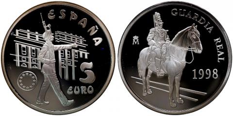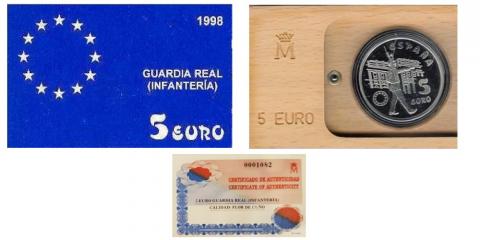 Moneda de España de 5 Euro FNMT 1998 dedicada a Carlos V emperador, acuñada en plata en calidad Flor de cuño.