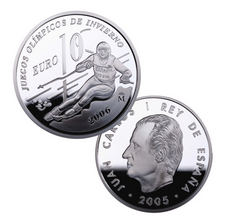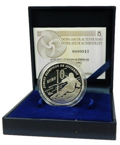 Entre los días 10 y 26 de febrero de 2006 se celebran los XX Juegos Olímpicos de Invierno en la ciudad italiana de Turín. Para conmemorar este acontecimiento deportivo, la FNMT-RCM ha emitido, acuñado y puesto en circulación una moneda de plata de 10 euros de valor facial.