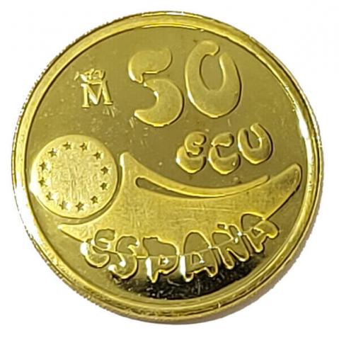 Moneda de España de 50 ECU FNMT 1989 dedicada a Felipe II, acuñada en oro en calidad Flor de cuño.