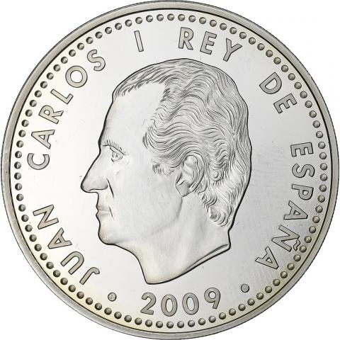 En el anverso de la moneda de plata aparece la efigie de S. M. el Rey Don Juan Carlos I.
