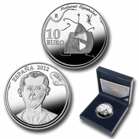 8 reales plata 2012 de la serie pintores españoles representando la obra 'Mujer, pájaro, estrella' de Miró.