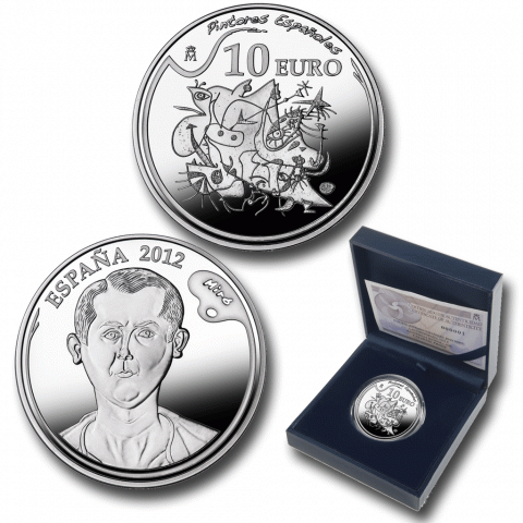 8 reales plata 2012 de la serie pintores españoles representando la obra 'La estrella matinal'' de Miró.