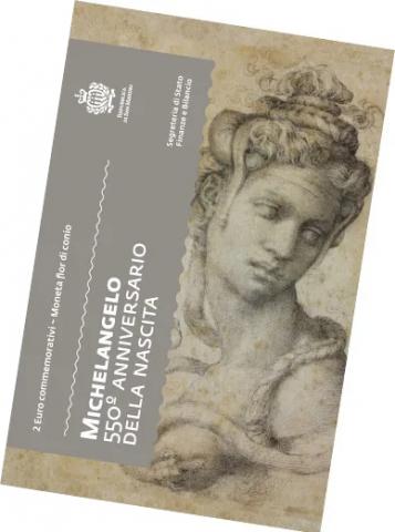 Cartera oficial de San Marino con los 2 Euro 2025 dedicados al 550 Aniversario del Nacimiento de Miguel Ángel, en calidad BU.