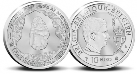 Moneda de 10 Euro, acuñada en plata, de 2025 dedicadas a los 25 años de la inclusión como Patrimonio Mundial de la Humanidad de la UNESCO de las minas neolíticas de sílex de Spiennes , en calidad PROOF.