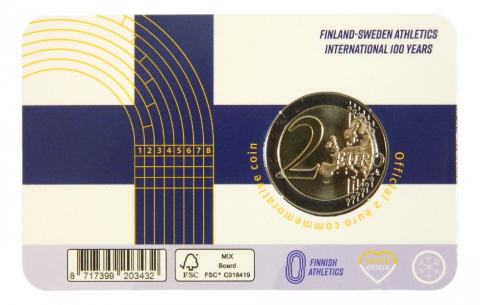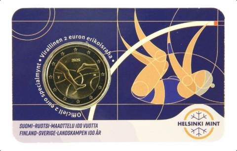 Coincard con la Moneda de 2 Euro Finlandia 2025 dedicados al 100º aniversario de los Juegos de Atletismo Finlandia-Suecia, en calidad BU. En su versión Finlandesa.
