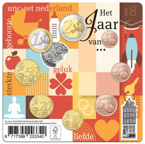 Blister de Holanda con las 8 monedas Euro (0.01 - 2 €) del 2025, en calidad S/C.