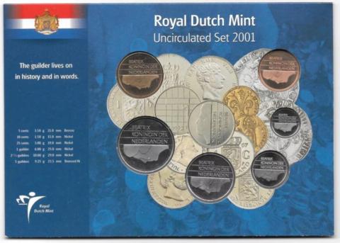 Cartera Holanda Koninklijke Nederlandse Munt Set 2001 con las 6 Monedas en Gulden del 2001, en calidad SC.