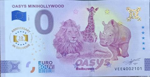 Billete 0 Euro 2025-1 Oasys MiniHollywood Animales Anniversary