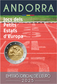 Cartera Andorra 2 Euro 2025 conmemorativa de los Juegos de los Pequeños Estados de Europa, en calidad BU.