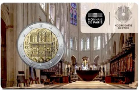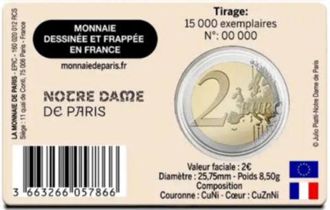 Coincard oficial con los 2 Euro Francia 2025 Notre-Dame, en calidad BU.