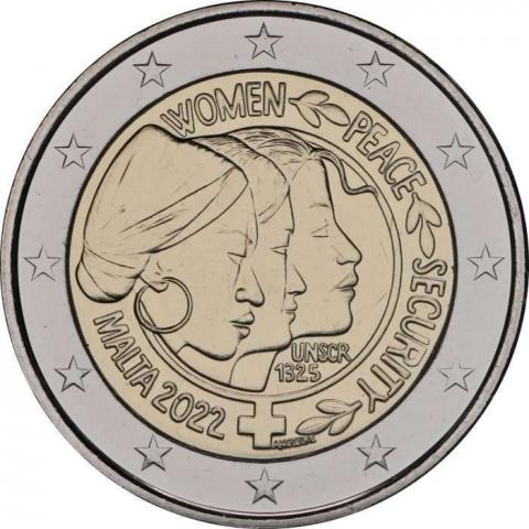 Moneda de 2 Euro Malta 2022 dedicada a la La Resolución 1325 del Consejo de Seguridad de la ONU sobre Mujeres, Paz y Seguridad, en calidad SC.