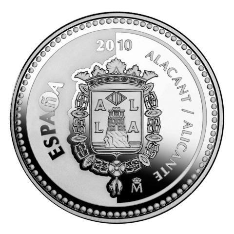 En el anverso se reproduce el escudo y nombre de Alicante. .