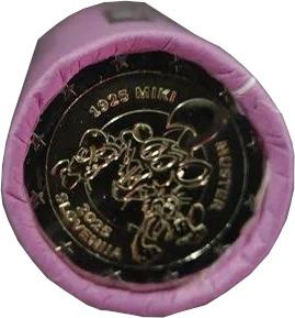 Cartucho de 25 Monedas de 2 Euro de Eslovenia 2025 conmemorativa del Centenario del nacimiento de Miki Muster, en calidad S/C.