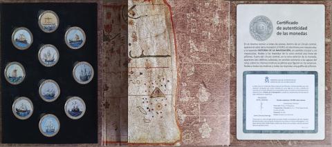 Colección completa acuñada por la FNMT y emitida por Correos titulada "Filatelia y Navegación”, dedicada a embarcaciones que, por una u otra razón, han sido relevantes a lo largo de los tiempos. Es similar a la colección "Historia de la Navegación” agotada de forma integra en la FNMT pero el estuche impreso para la distribución de Correos.