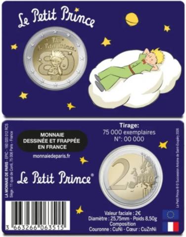Coincard oficial de Francia con los 2 Euro 2026 El Principito dedicada a la Nube, en calidad BU.