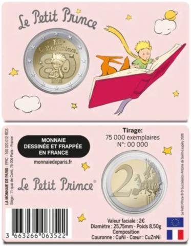 Coincard oficial de Francia con los 2 Euro 2026 El Principito dedicada a el Libro, en calidad BU.