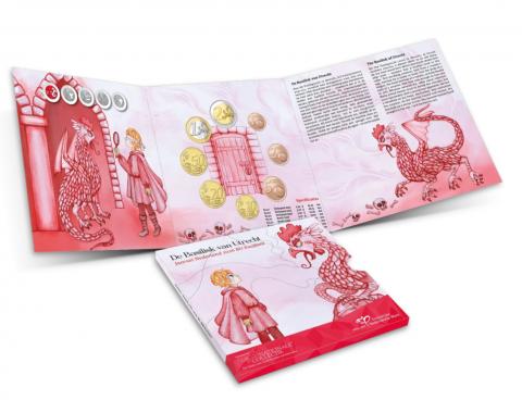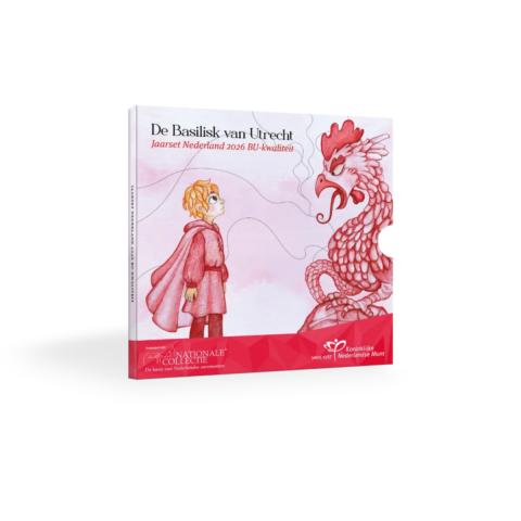La Cartera Anual de Holanda 2026 conteniendo todos los valores euro (0,01 - 2€) es la primera de una nueva serie denominada Mitos y cuentos populares holandeses y está dedicada al Basilisco de Utrecht, en calidad BU.