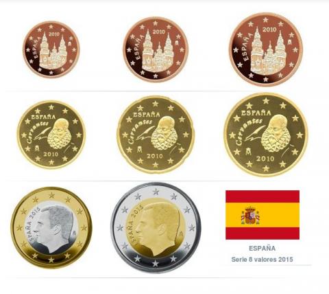 Serie de España con las 8 monedas Euro (0.01 - 2 €) del 2026, procedentes de cartucho en calidad S/C.