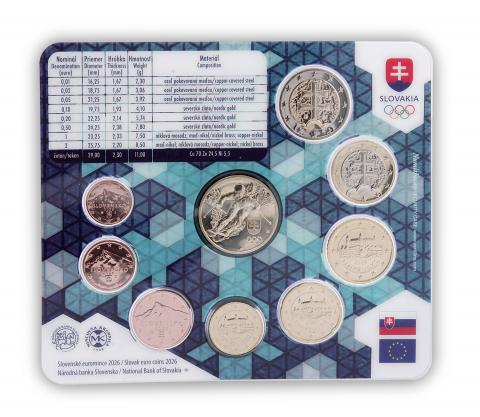 Cartera Eslovaquia con las 8 monedas Euro (0.01 - 2 €) del 2026 dedicada a los Juegos Olímpicos de Invierno de Milano – Cortina d'Ampezzo, en calidad BU.