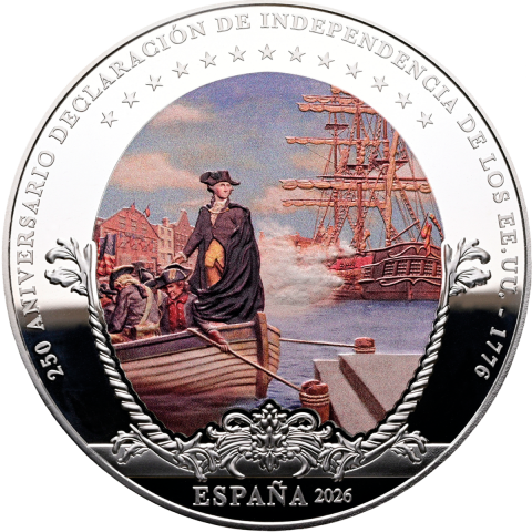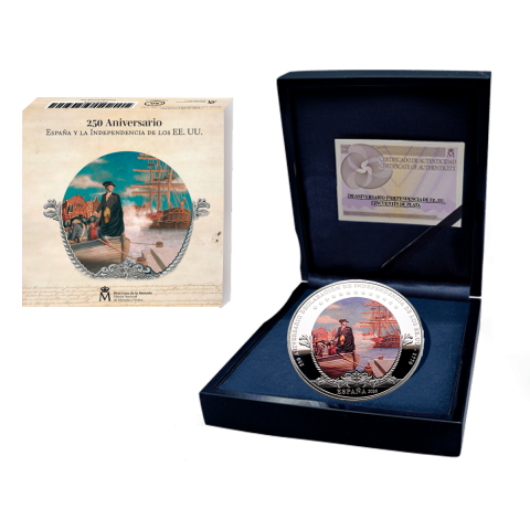 Con motivo de la celebración del 250 aniversario de la Declaración de Independencia de los Estados Unidos de América, se emite una serie de monedas de colección. Bajo esta temática y con su reflejo en los motivos de las monedas, se destaca la contribución española en el éxito de la contienda a favor de las Trece Colonias americanas.