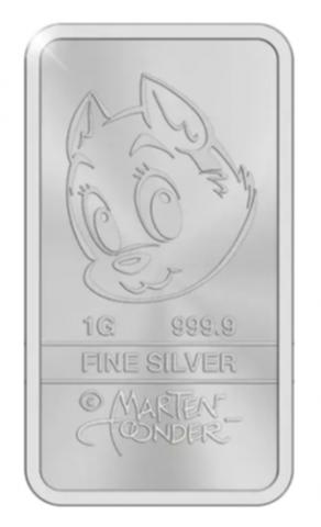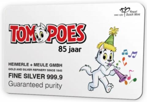 Una edición única para el 85.º cumpleaños de Tom Poes. Especialmente para celebrar el cumpleaños de Tom Poes, el gato blanco favorito de los Países Bajos, amigo y eterno salvador, la Real Casa de la Moneda de los Países Bajos lanza una barra de plata de 1 gramo. Sin duda, es la barra de plata más especial que jamás hayas visto: ¡una pieza imprescindible!