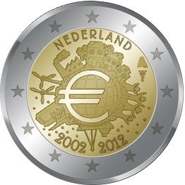 Moneda de 2 Euro de los Países Bajos Conmemorativa de los 10 Años de la circulación de monedas y billetes Euro sacada de cartucho en calidad SC.
