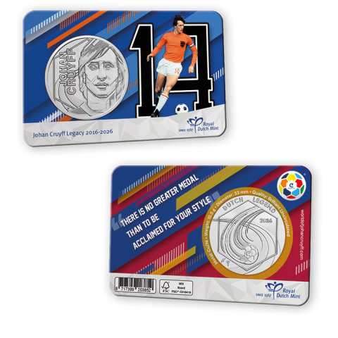 Coincard oficial de Holanda con la medalla dedicada a Johan Cruyff Legacy 2016–2026 - Oranje-Barcelona Penning.