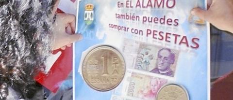 Busque en los cajones, en huchas antiguos y viejos monederos que a lo mejor puede ir a la peluquería, cenar o hacerse un regalo con dinero sin gastar un euro. Setenta comercios de la localidad madrileña de El Álamo se han apuntado a una iniciativa que desde hoy hasta final de septiembre permitirá a sus vecinos y visitantes gastar en tiendas o en bares con la antigua peseta, la moneda española que hace una década dejó paso al euro.