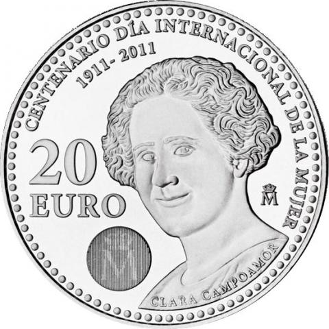 Moneda española de 20 Euro 2011 conmemorativa del Día internacional de la Mujer (Clara Campoamor). 18 Gr. de Plata 925/1000.
