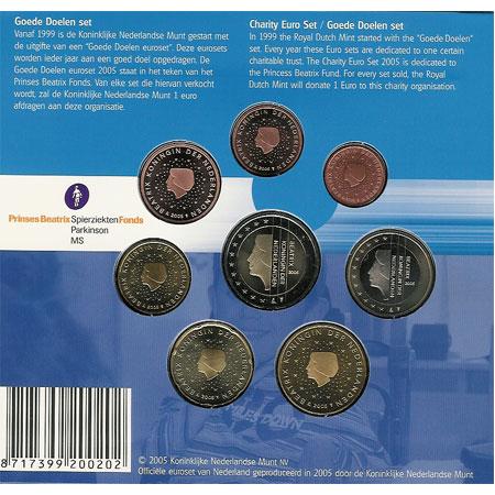 Cartera Oficial de los Países Bajos con los 8 valores Euro (0.01 € - 2 €) del 2005 en calidad BU con la temática "Fondo de la Princesa Beatriz".