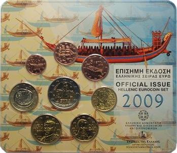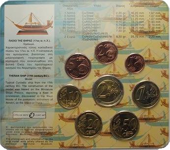 Cartera Oficial Grecia con las 8 monedas estándar (0.01 € - 2 € normales) en calidad BU.