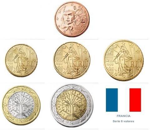Serie de las 6 monedas Euro emitidas para circulación por Francia en 2002 (0.05 - 2 €), procedentes de cartucho en calidad S/C.