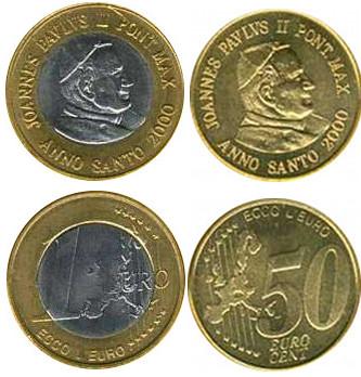 Pruebas de 1 y 50 Euro Cent Vaticano 2000