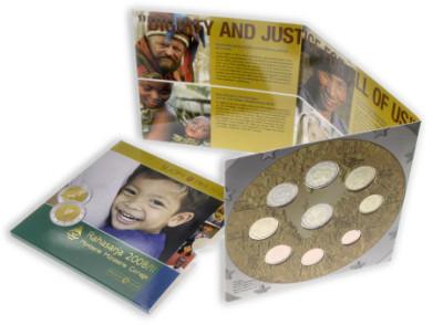 Segunda Cartera oficial de Finlandia con las 9 monedas Euro (0.01 - 2 € + 2 € cc) del 2008 dedicada a los derechos humanos.