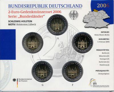 Cartera 5 x 2 Euro Alemania 2006 Schleswig-Holstein BU