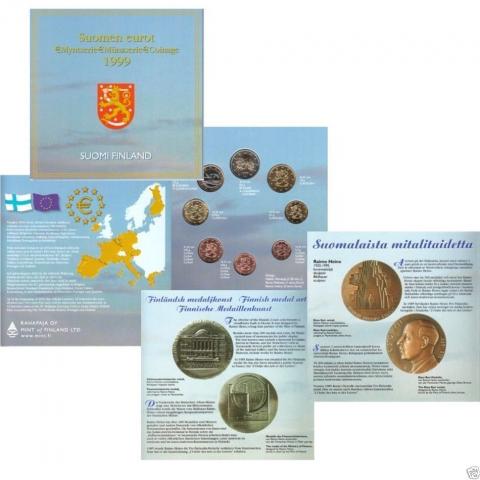 Cartera oficial de finlandia con las 8 monedas Euro (0.01 -2 €) del 1999, procedente del Triple Set Introductorio 1999-2000-2001 en calidad BU.