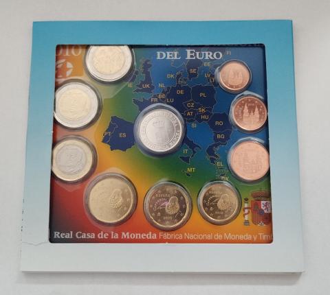 Cartera oficial de España 2010 con Medalla conmemorativa perteneciente a la Serie Comunidades Autónomas dedicada a Castilla La Mancha.