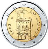 Moneda de 2 Euro San Marino 2007 común, procedente de cartera en calidad BU.