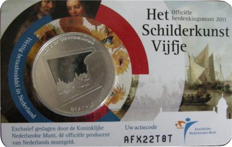 Coincard oficial de los Países Bajos con la moneda de 5 Euros 2011 dedicada a los cuadros holandeses.