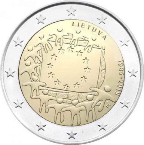 2 Euro Lituania 2015 30 Años Bandera Europea