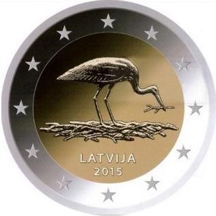 Moneda de 2 Euro Letonia 2015 dedicada a la Cigüeña, procedente de cartucho en calidad S/C.