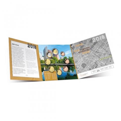 Cartera oficial de Holanda, con los 8 valores Euro (0.01 -2 €) del 2018 de la Serie Ciudades holandesas dedicado en 2018 a La Haya. en calidad BU.