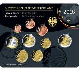 Cartera oficial de Alemania 2018 con las 7 monedas Euro (0.01 - 1 €) comunes + los 2 Euro conmemorativos del Estado Federal de Estado de Berlín (Palacio de Charlottenburg) y los dedicados a Helmut Schmidt, acuñadas en Berlín A en calidad PROOF.