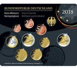 Cartera oficial de Alemania 2018 con las 7 monedas Euro (0.01 - 1 €) comunes + los 2 Euro conmemorativos del Estado Federal de Estado de Berlín (Palacio de Charlottenburg) y los dedicados a Helmut Schmidt, acuñadas en Stuttgart F en calidad PROOF.