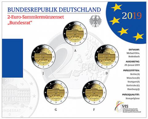 Cartera 5 x 2 Euro Alemania 2019 Bundesrat BU