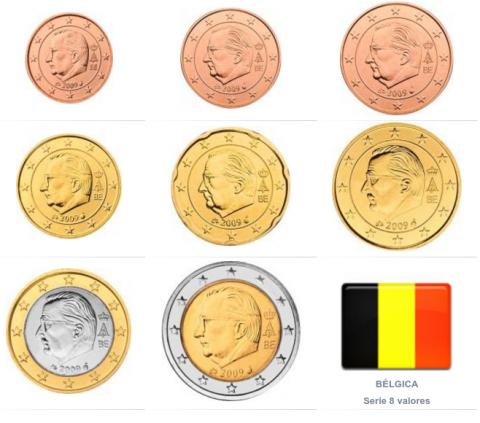 Serie de Bélgica con las 8 monedas Euro (0.01 - 2 €) del 2011 procedente de cartera oficial en calidad BU.