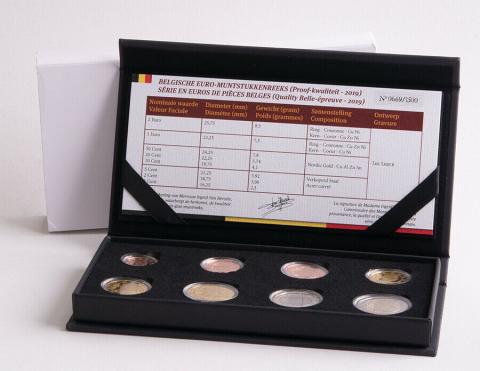Cartera oficial de Bélgica con las 8 monedas Euro (0.01 - 2 €) del 2019 en calidad PROOF.