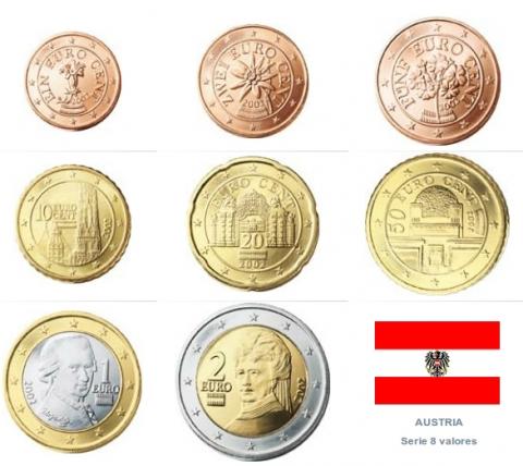Serie con las 8 Monedas Euro Austria 2020 (0.01 - 2 Euro), procedentes de cartucho en calidad SC.
