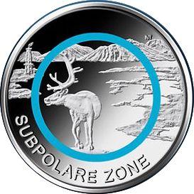 Moneda de 5 Euro de Alemania perteneciente a la tercera serie de monedas "Zonas Climáticas" dedicada a la Zona Subpolar, acuñada en Berlín A. Procedente de cartucho en calidad S/C.