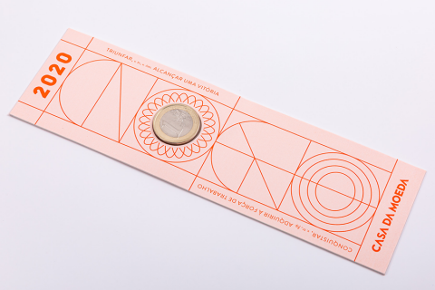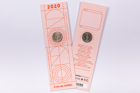 Cartera oficial de Portugal con la moneda de 1 Euro 2020 en formato marcapáginas emitida para conmemorar un un logro o un evento (como un aniversario, la finalización de una carrera o la obtención de un título académico), con una zona que se puede personalizar, para escribir una dedicatoria y el motivo de la celebración.